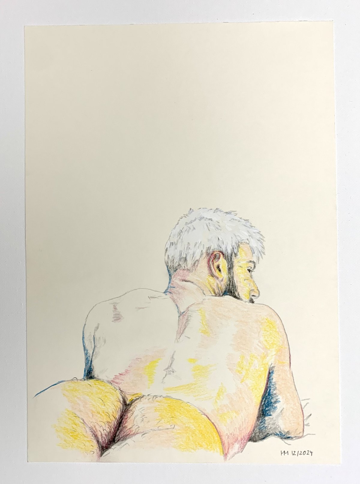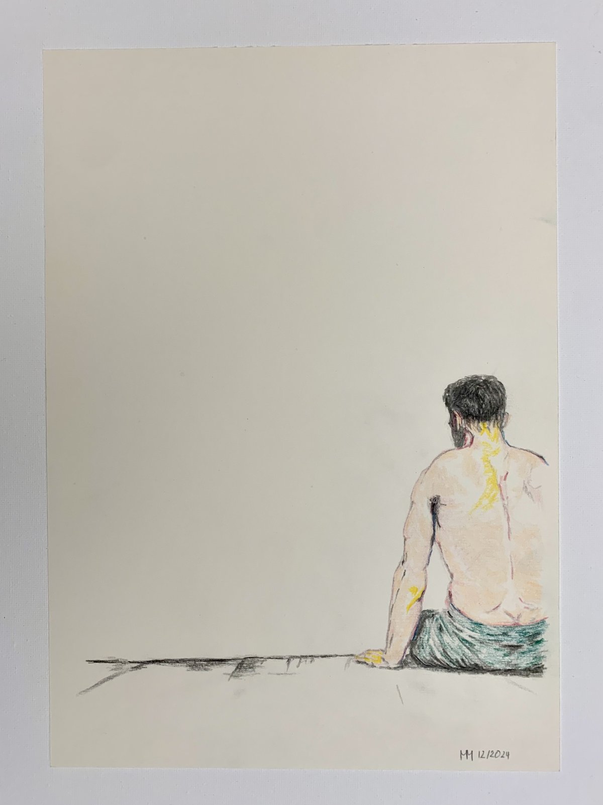 - Das Motiv: Figuren, die in sich ruhen. Menschen, die den Moment des Nichtstuns verkörpern, eingefangen in kleinen Zeichnungen auf Papier (30x21cm).
