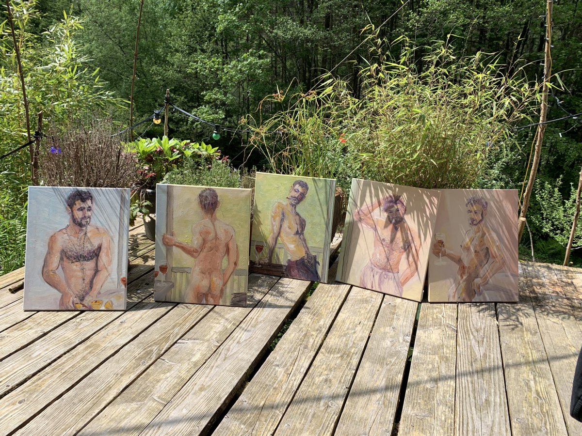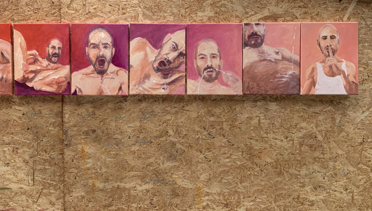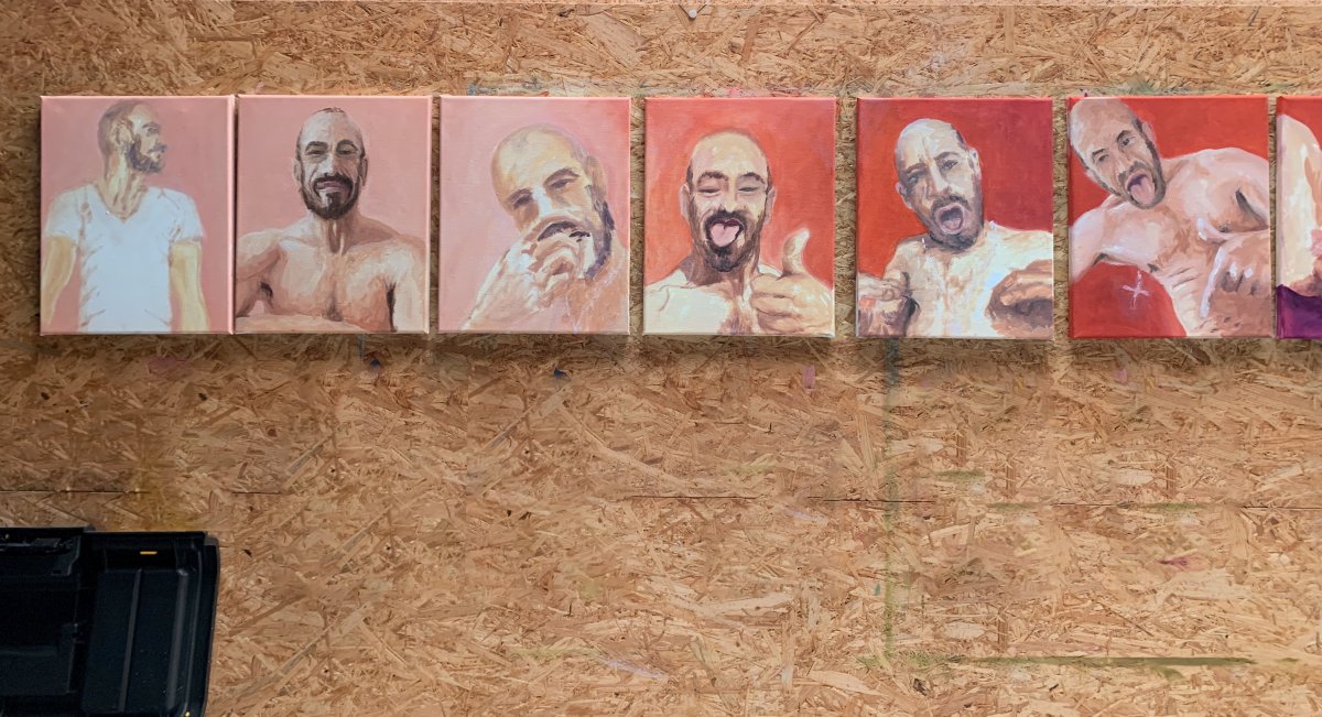 Gesamtansicht: 5 Freunde-unfinished, 07-2023, Öl auf Leinwand, 5x50x40cm