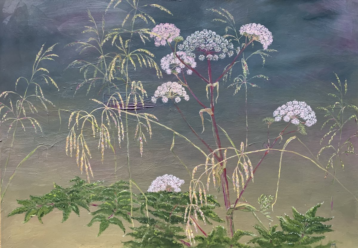 Engelwurz und Gräser, 8-2023, Öl auf Leinwand, 60x80cm