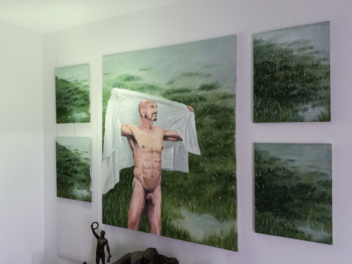 Georges im Regen, 2023, Öl auf Leinwand, , 100x80cm