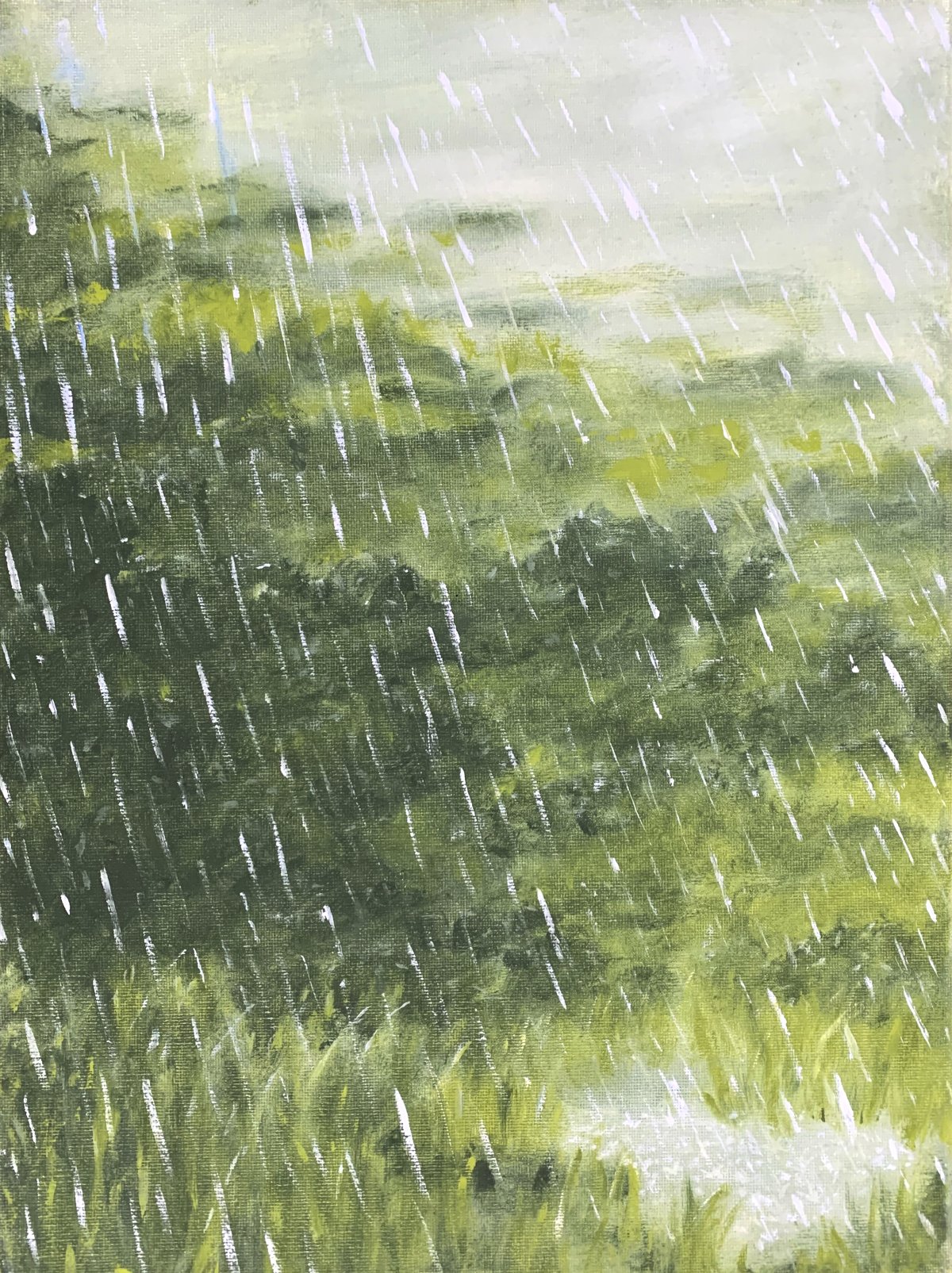 Studie, Dichter Regen, 1-2024, Öl auf Leinwand, 40x30cm